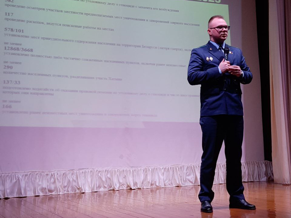 В прокуратуре Ленинского района г.Минска проведена встреча со студентами факультета права УО «БГЭУ», направленная на сохранение памяти о жертвах геноцида и формирование у молодежи уважения к истории своей страны и всего мира.