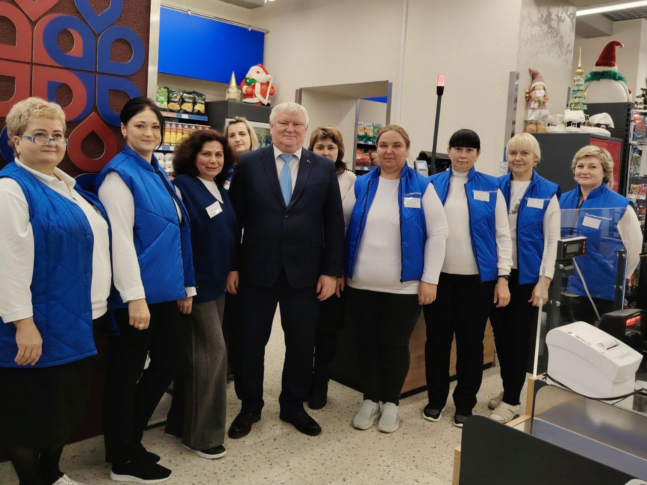 Директор предприятия Дмитрий Бонохов пообщался с покупателями, отзывы только положительные: есть все необходимое, чтобы купить основные продукты, и какой выбор мороженого!