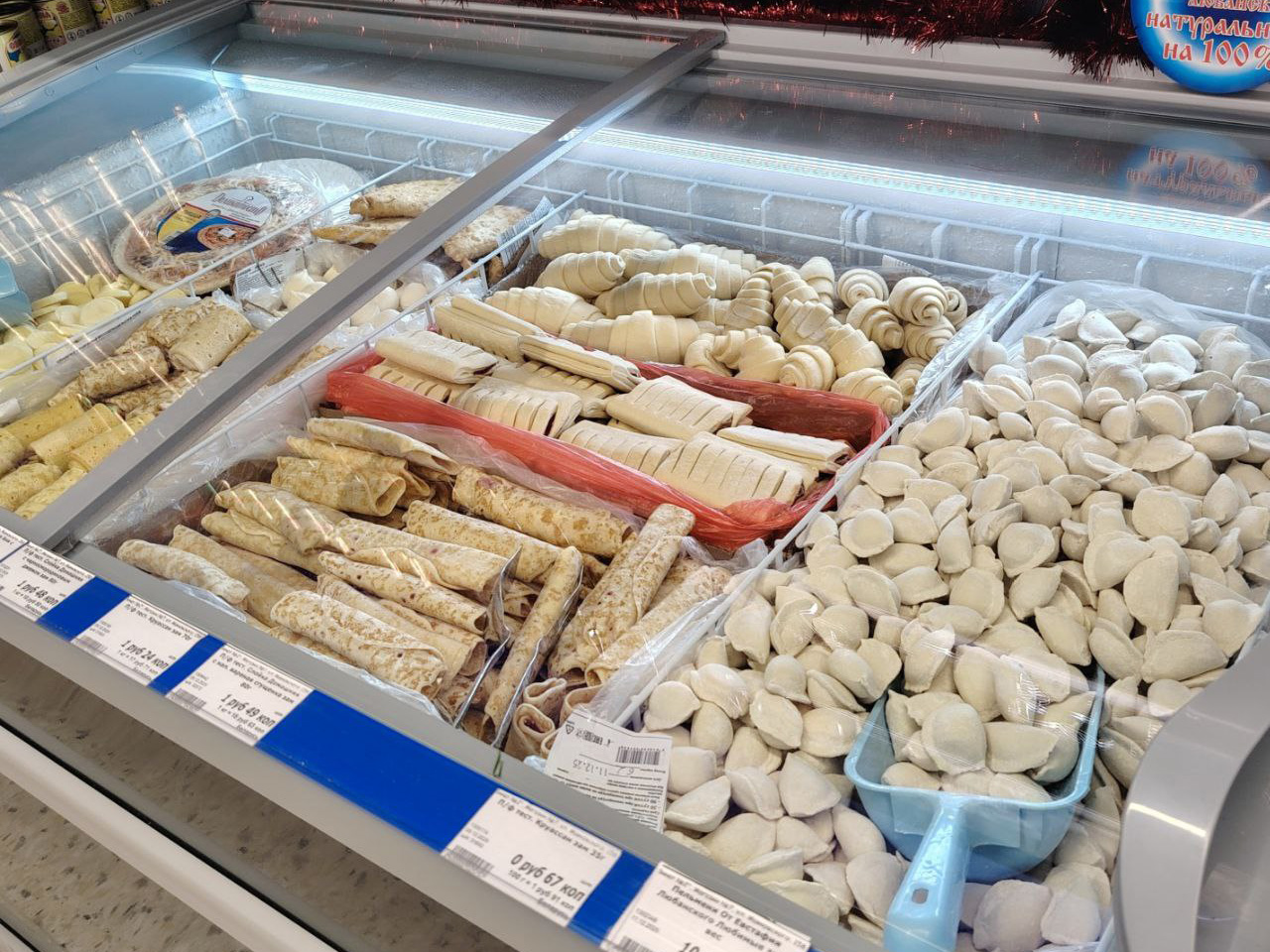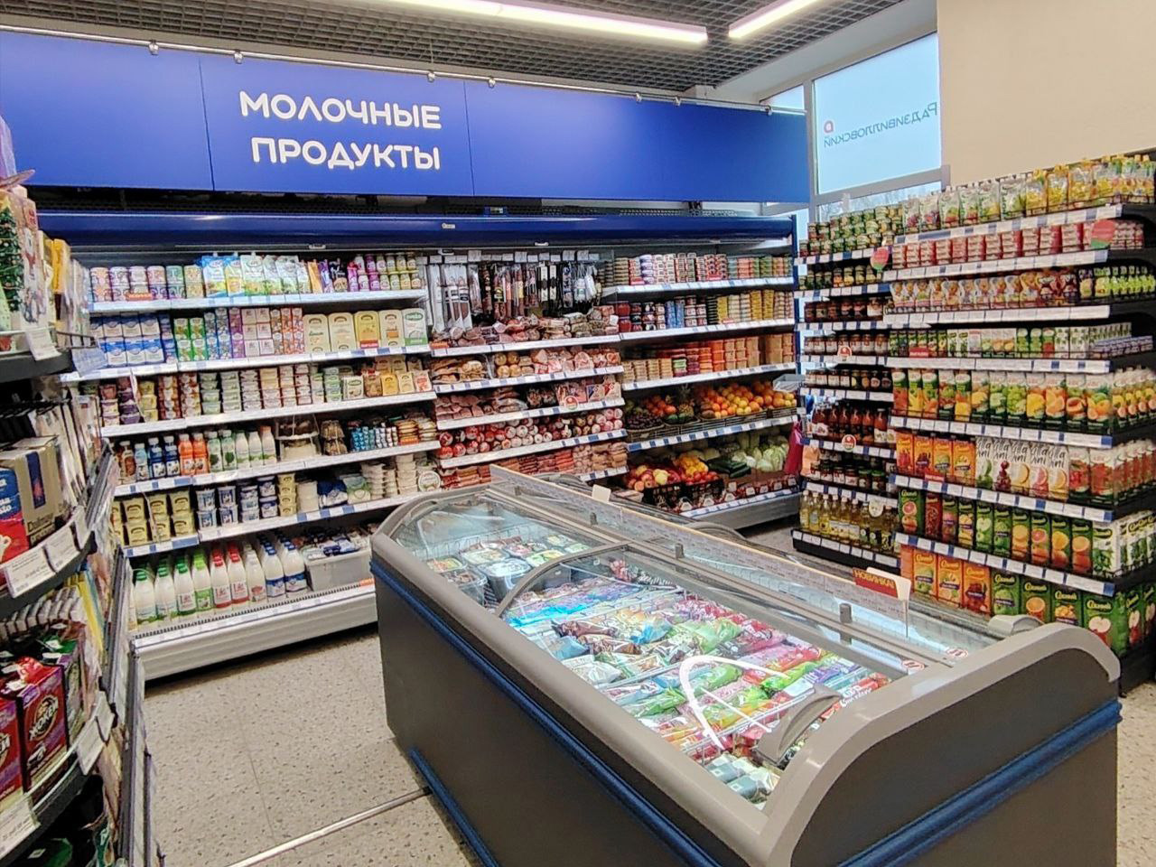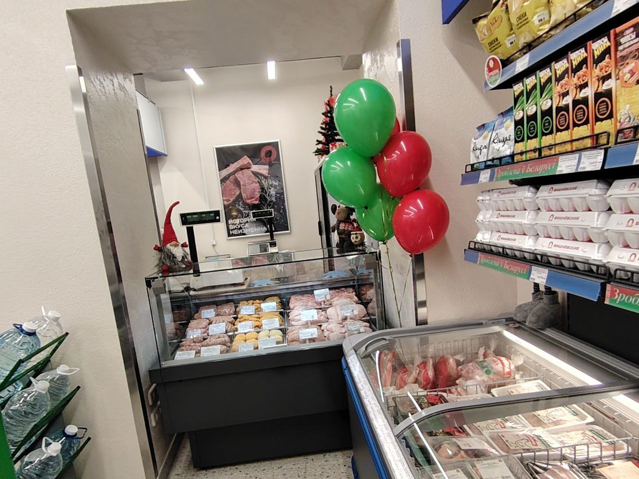 — Планировка, добавлено новое холодильное оборудование, что позволило организовать выкладку продукции — мороженого, мясной продукции в широком ассортименте от охлажденного мяса до полуфабрикатов (руляды, колбаски, фарши, наборы для первых блюд, пельмени, блинчики, хинкали, чебуреки, круассаны); касса самообслуживания.