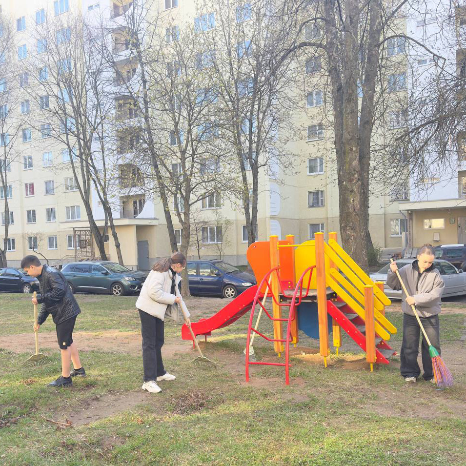 В ходе работ силами участников была приведена в порядок вся территория двора: убрана опавшая листва и бытовой мусор, подметены пешеходные дорожки, а также особое внимание было уделено детской площадке — она была тщательно очищена.
