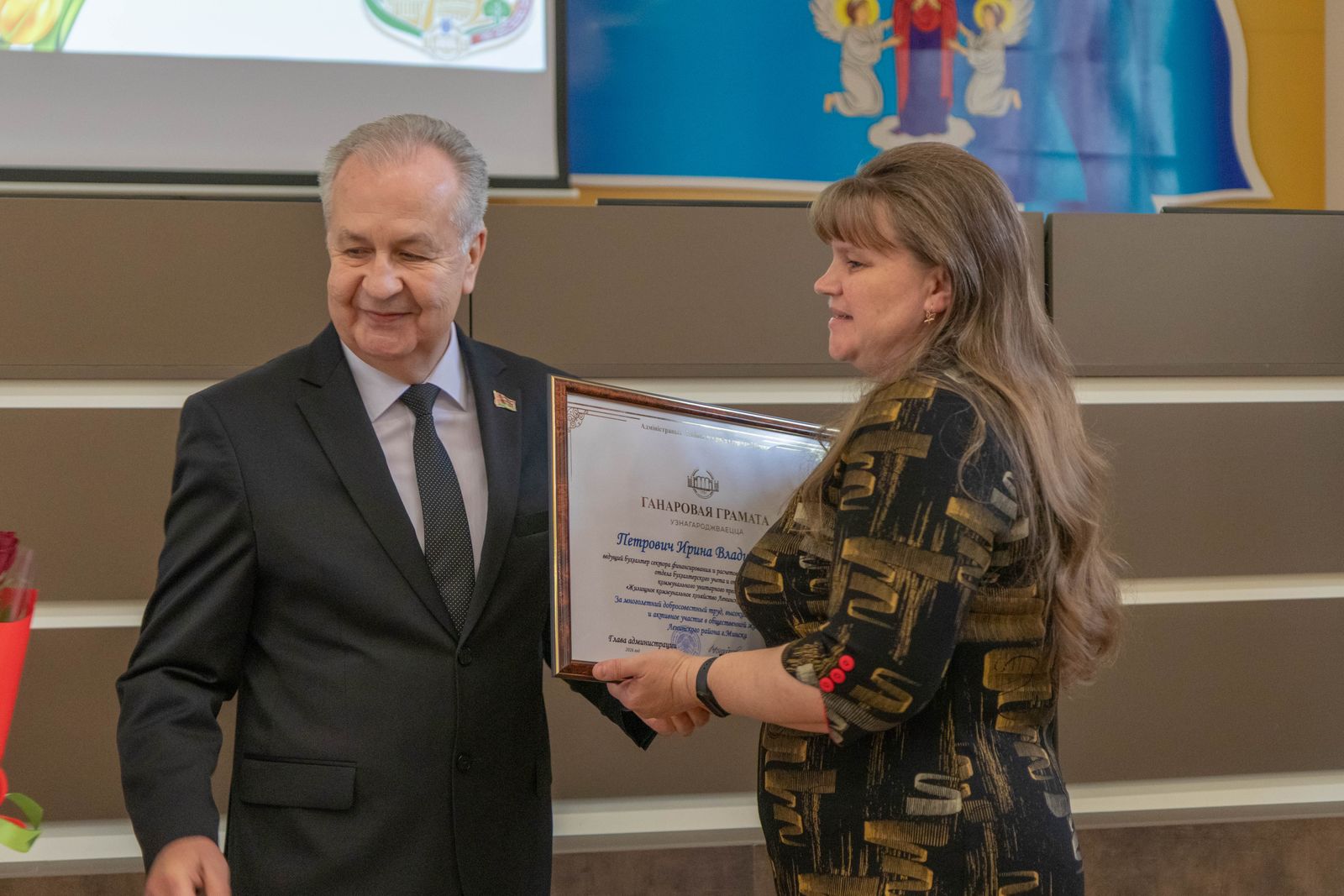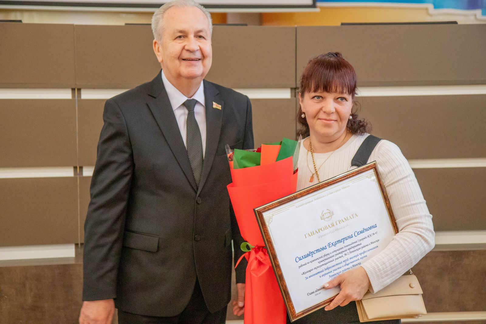 Юбилей стал поводом отметить тех, кто своим ежедневным трудом создаёт славу Ленинского района. Почётные грамоты и благодарности различного уровня — от администрации района до